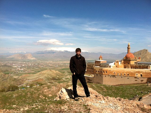 as Lord Isaac. Who knew I had a whole palace named after me? We hiked up a nearby hill for a magnificent view of the palace set against the city of Doğubeyazıt extending across the lowlands with white mountain peaks stretching to the sky on the other side of the valley.